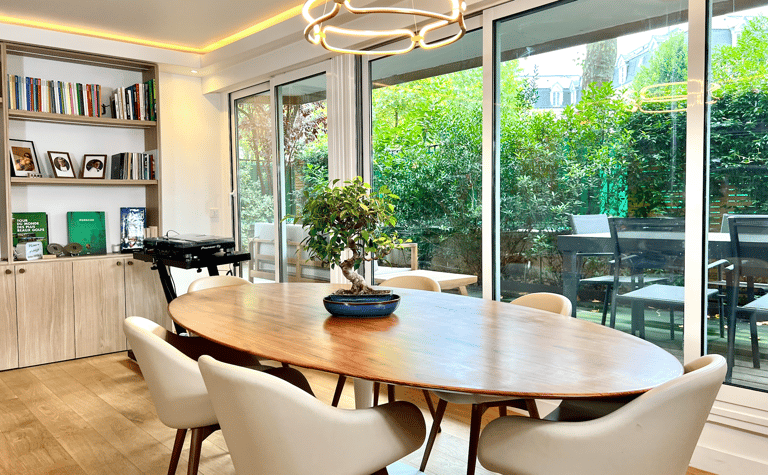 Au cœur de Neuilly, un espace de 180 m² accueille jusqu’à cinq personnes. Entre art moderne et décor atypique, chaque détail y compose une atmosphère singulière.