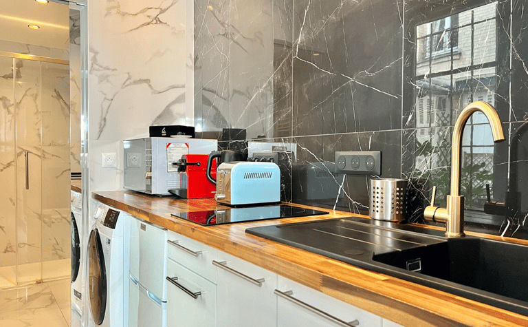 Tout droit inspiré d’une décoration au style versaillais, ce studio Louis XV offre une expérience unique alliant raffinement et confort dans un 25 m², idéal pour un séjour de courte durée à 4 personnes dans le 14ᵉ arrondissement de Paris.